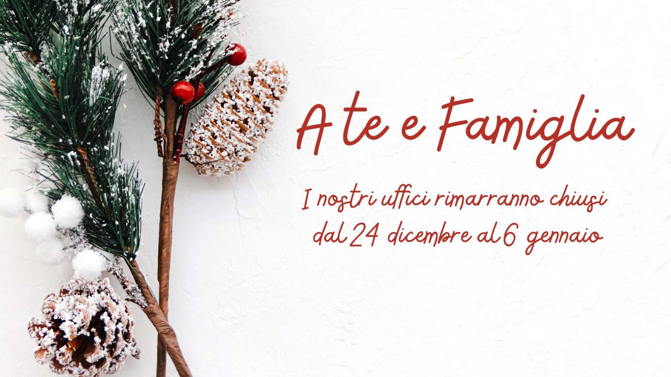 I nostri uffici rimarranno chiusi dal 24 dicembre al 6 gennaio. Buone feste a tutti!