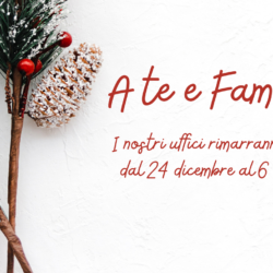 I nostri uffici rimarranno chiusi dal 24 dicembre al 6 gennaio. Buone feste a tutti!