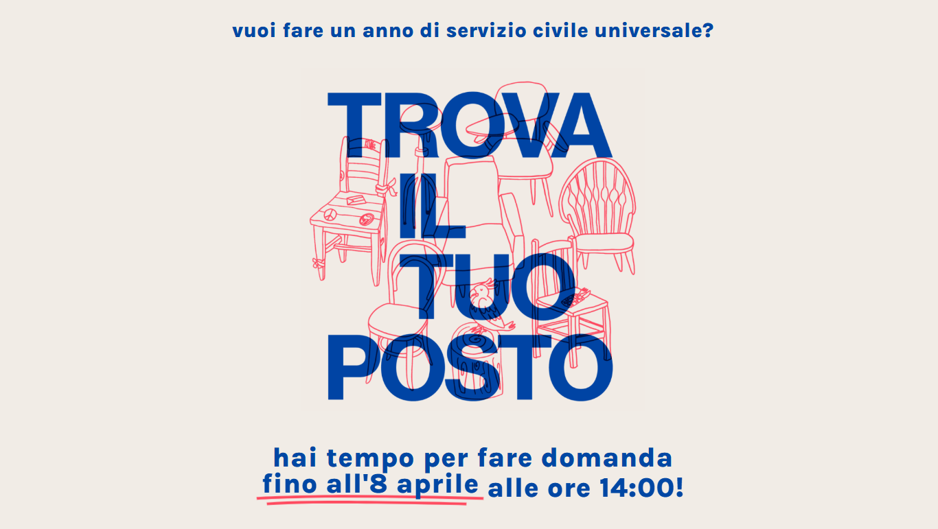 Se hai tra i 18 e i 28 anni scegli il Servizio Civile Universale per fare la differenza: un anno per sperimentare, imparare, conoscere migliorando il territorio. Ogni sedia è una possibilità, ogni possibilità è un progetto per costruire comunità. C’è un posto anche per te: devi solo scoprire quale!